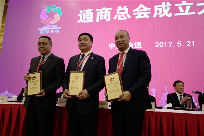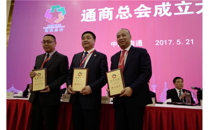 2017年5月21日下午,通商總會(huì)第一次會(huì)員代表大會(huì)隆重召開。會(huì)議通過了通商總會(huì)章程,選舉產(chǎn)生了通商總會(huì)執(zhí)行會(huì)長、副會(huì)長和理事。安惠公司董事長陳惠與其他兩人當(dāng)選為執(zhí)行會(huì)長,南通市委副書記、市政府市長韓立明為他們授牌。