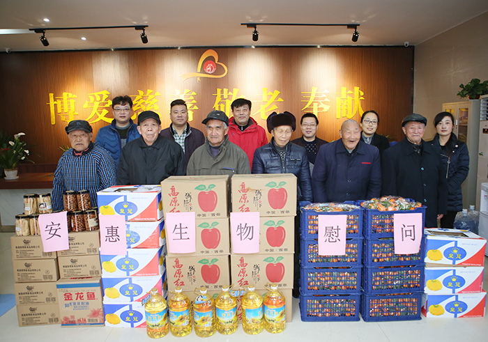 2018年2月6日,在春節(jié)即將到來之際,安惠公司副董事長陸漢萍、黨委副書記金敏林、工會(huì)主席李士強(qiáng)和安惠江海志愿者一行來到南通開發(fā)區(qū)敬老院,看望這里的老人,給他們送去慰問品和節(jié)日的祝福。