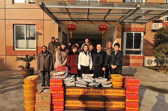 2014年1月23日上午,安惠公司黨委副書記金敏林、工會(huì)主席李士強(qiáng)、團(tuán)委書記竺婷一行來到南通開發(fā)區(qū)敬老院,看望和慰問在這里生活居住的老人,為他們送去靈芝酒、食用油、水果等節(jié)日慰問物資,表達(dá)全體安惠人對(duì)他們的關(guān)懷。