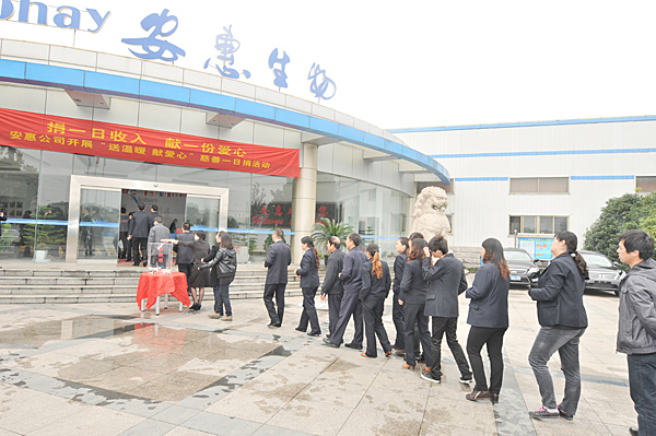 2013年4月22日,安惠公司以簡(jiǎn)樸的形式組織了“情系雅安 奉獻(xiàn)愛心”捐贈(zèng)儀式。董事長(zhǎng)陳惠代表安惠公司捐出20萬元人民幣和價(jià)值100萬元的物資。安惠公司員工也積極響應(yīng)自覺捐款,短短幾分鐘內(nèi),安惠員工累計(jì)捐款105543元。